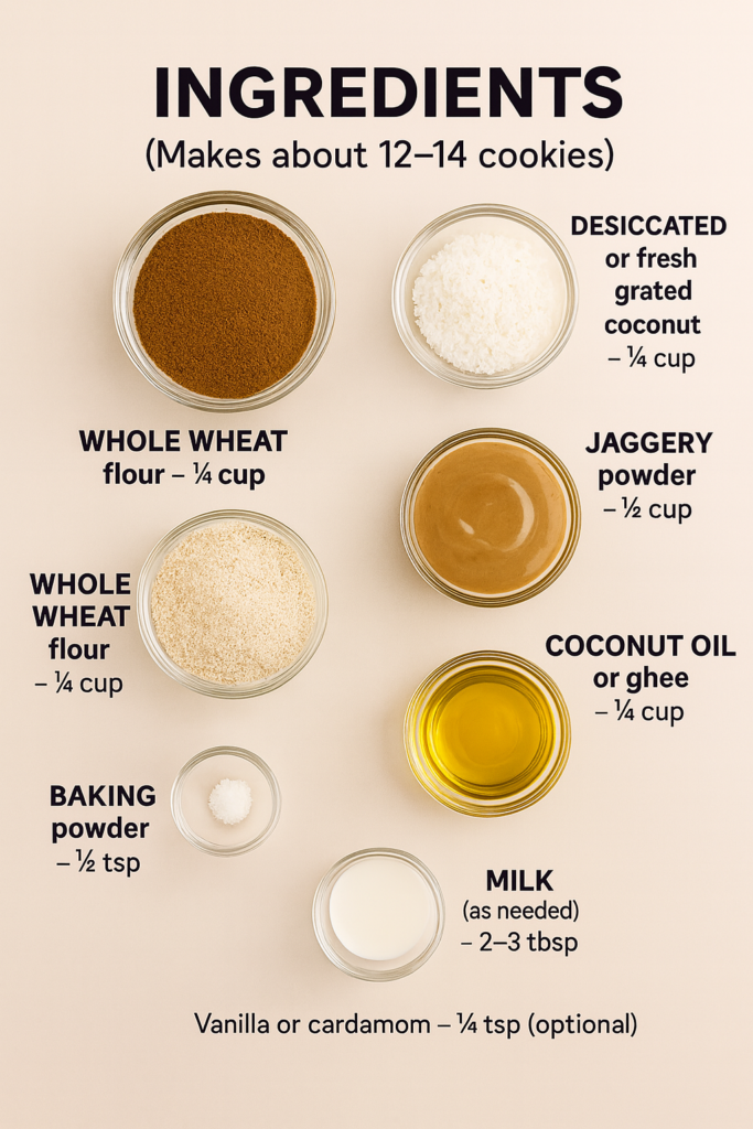 Unlike refined flour cookies, these are eggless, sugar-free, and made with wholesome ingredients. Whether you enjoy them with your morning chai or pack them in a tiffin box, these cookies are light, crunchy, and deeply aromatic with coconut and cardamom.