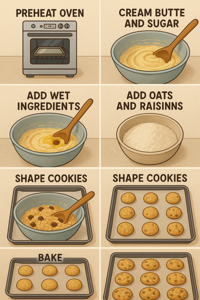 - Add Oats and Raisins: Fold in the oats and raisins, ensuring they are evenly distributed throughout the dough.